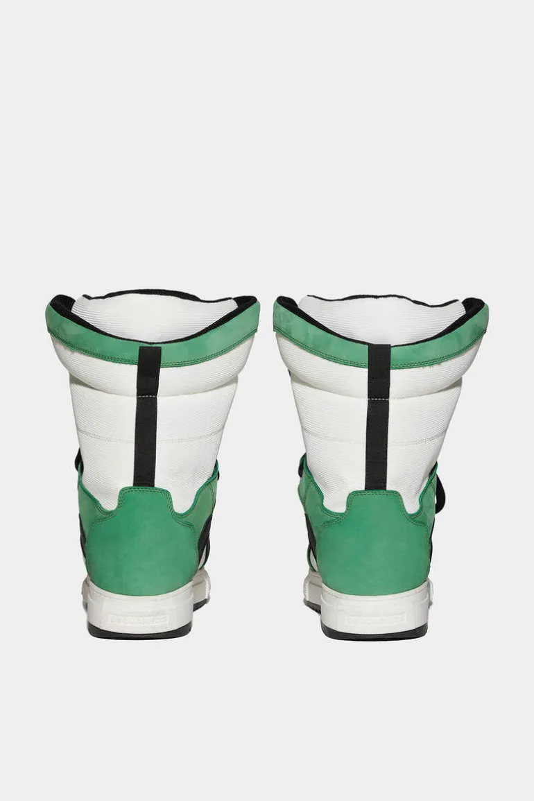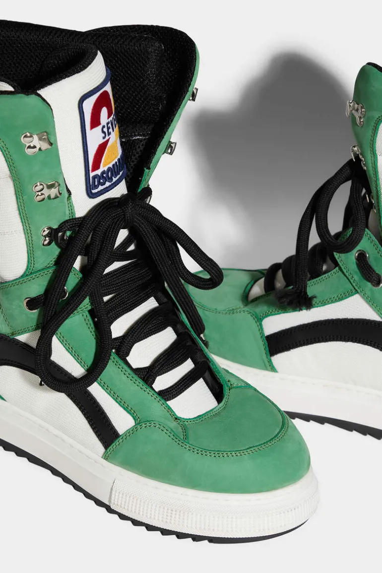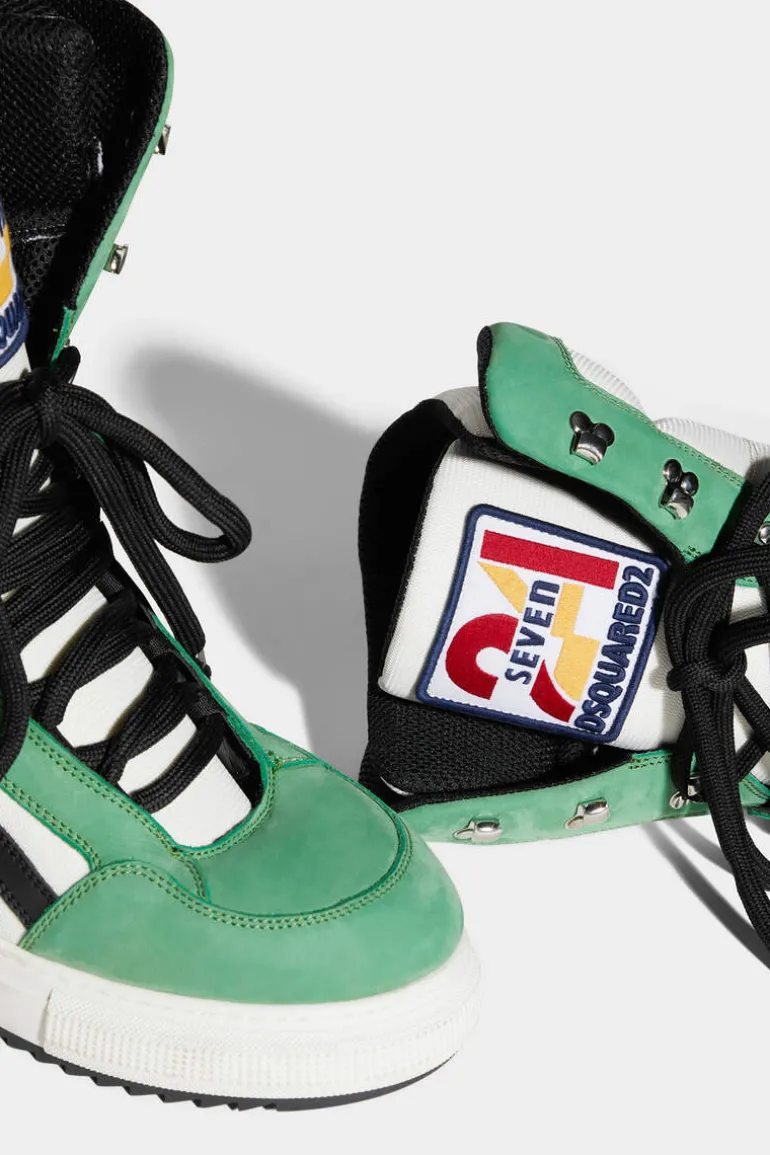 Make A Statement With These Chunky, Extra High-Top Dsquared2 Men’S Sneakers. The Elongated Upper, Resembling The Shaft Of A Boot, Adds A Trendy And Fashionable Touch. The Round And Wide Toe Box Adds A Unique And Eye-Catching Touch, While The Upper And Shoelaces Feature Contrasting Colours. The Distinctive Swoosh Shaped Eyelet Adds A Touch Of Edge To These Shoes, And The Tongue Features Statement Branding With A « 24 Seven » Graphic Print. Pair These Sneakers With Distressed Jeans And A Graphic T-Shirt For A Casual, Street-Style Look.