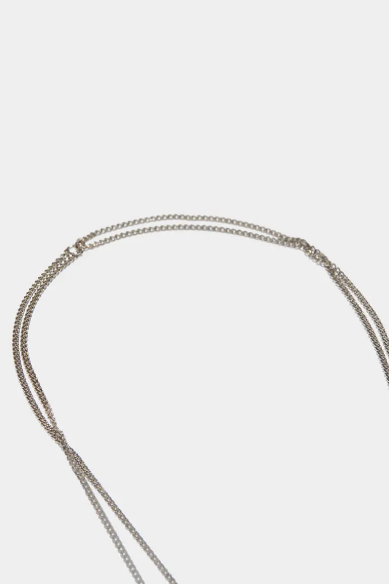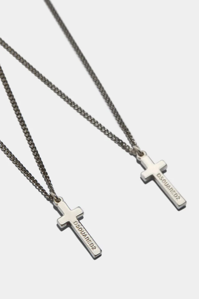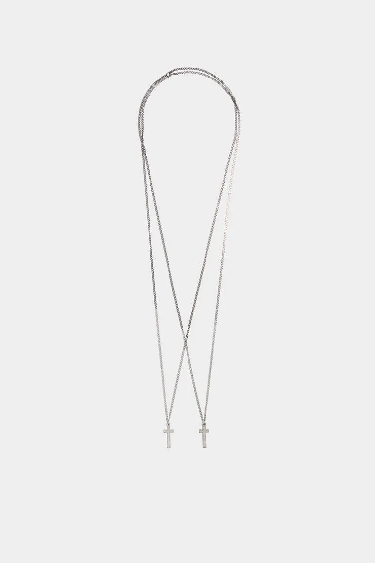 Enhance Your Saturday Night Outfit With This Stylish Necklace In Silver And Grey Metal, Adorned With Twin Crucifixes. Pair With A White, Open-Neck Shirt For An Effortlessly Cool Vibe.