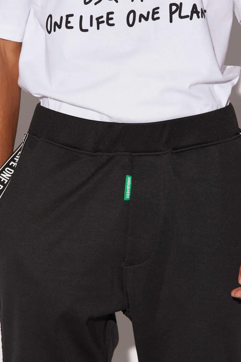 Stand Out From The Crowd With Dsquared2’S Relaxed-Fit Pants. The Monochrome Design And Eye-Catching Lettering Band On The Side, Printed With The Brand’S Motto, « One Life, One Planet, » Give These Pants A Unique And Fashionable Touch. For A Cool, Casual Look, Pair These Pants With A Simple T-Shirt And Some Sneakers. If You Want To Dress Them Up A Bit, Try Pairing Them With A Button-Down Shirt And Some Dress Shoes. For A Truly Fashionable Outfit, Top It Off With A Sleek Leather Jacket.
