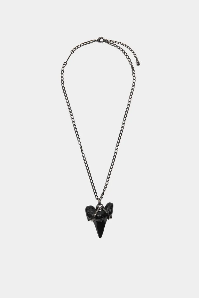 Add Some Edge To Your Jewellery Collection With The Shark Necklace From Dsquared2. This Bold And Unique Necklace Features A Sleek Black Monochrome Chain That Hangs Elegantly Around Your Neck. The Metal Clasp And Shark Fin Pendant Add A Touch Of Toughness, Making This Necklace The Perfect Accessory For Those Who Aren’T Afraid To Make A Statement. Whether You’Re Dressing Up For A Night Out Or Adding Some Flair To Your Everyday Look, This Necklace Is Sure To Turn Heads.