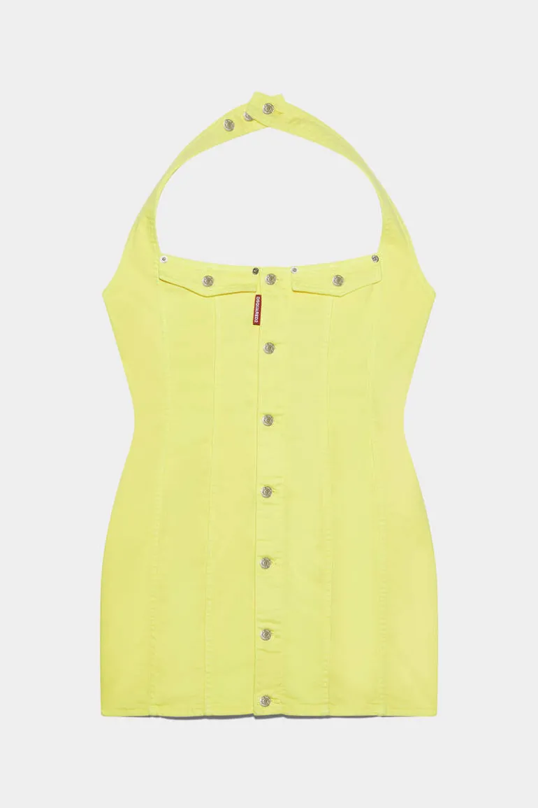 We’Ve Created This Dress In A Gorgeous Jeans Style, With A Super-Flattering Halter Neck You Can Adjust To Fit With Three Press-Studs. Cut To Flatter, It Has A Button-Through Front With Our Dsquared Metal Jean Buttons.