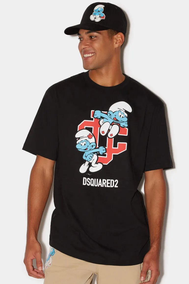 Rock The Skater Vibe In This Dsquared2 Men’S T-Shirt. The Relaxed Fit And Twin Smurfs Graphic Print On The Front Give It A Playful Vibe, While The Brand’S Iconic D2 Lettering Adds A Touch Of Sophistication. This Black T-Shirt Is A Versatile Addition To Any Wardrobe. For A Casual Look, Pair This T-Shirt With Some Distressed Jeans And Sneakers. Add Some Edge With A Leather Jacket Or Some Statement Jewellery. If You Want To Dress It Up, Swap Out The Jeans And Sneakers For Some Slim-Fit Chinos And Dress Shoes.