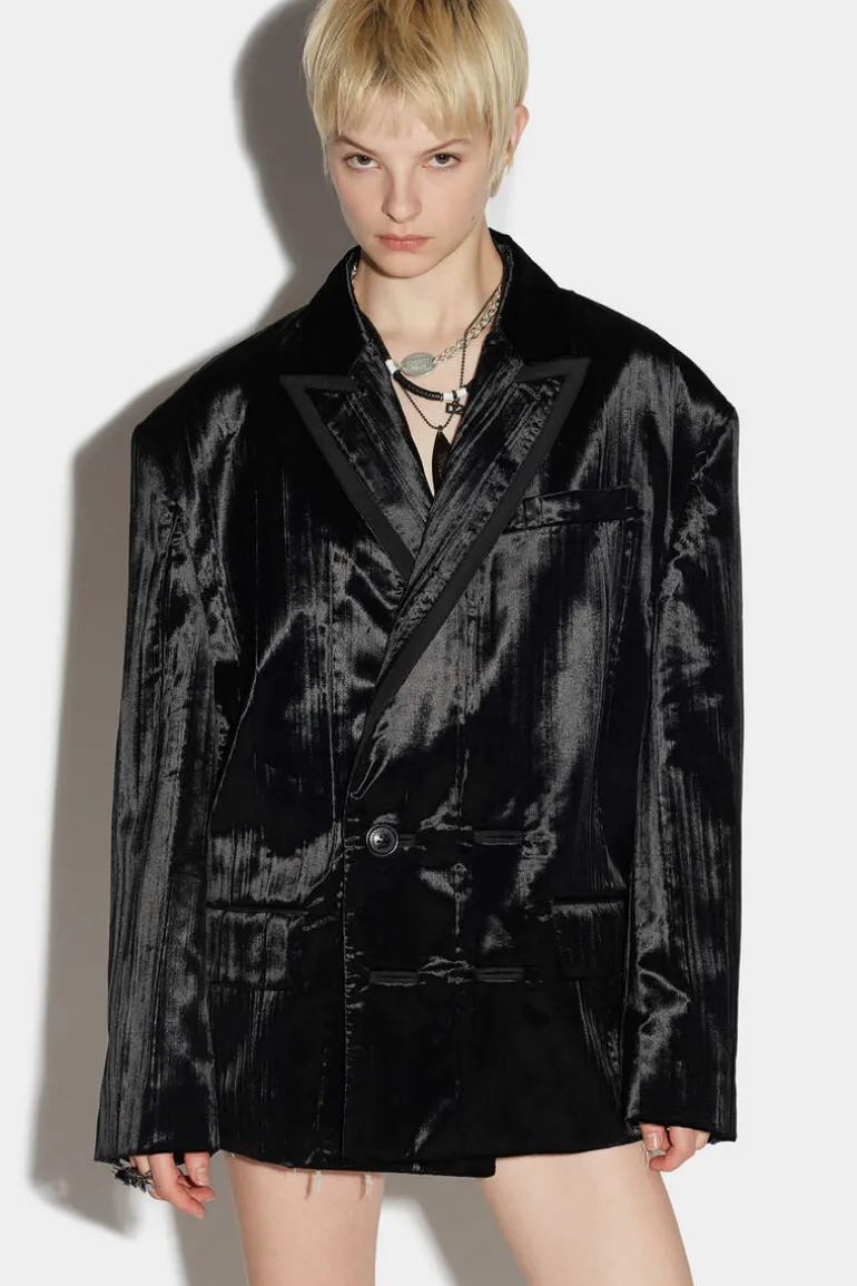 Channel Masculine Tailoring In This 80’S Double-Breasted Blazer. A Unique Piece With An Inimitable Dsquared2 Twist, It’S Worked In A Pleated Satiny Velvet, Finished With A Piping Trim On The Lapel. Features One Chest Pocket, An Oversized Fit And A Double-Breasted Closure. Pair With Dsquared2 Tailored Black Trousers For Sartorial Looks Or Distressed Jeans For A More Casual Vibe.