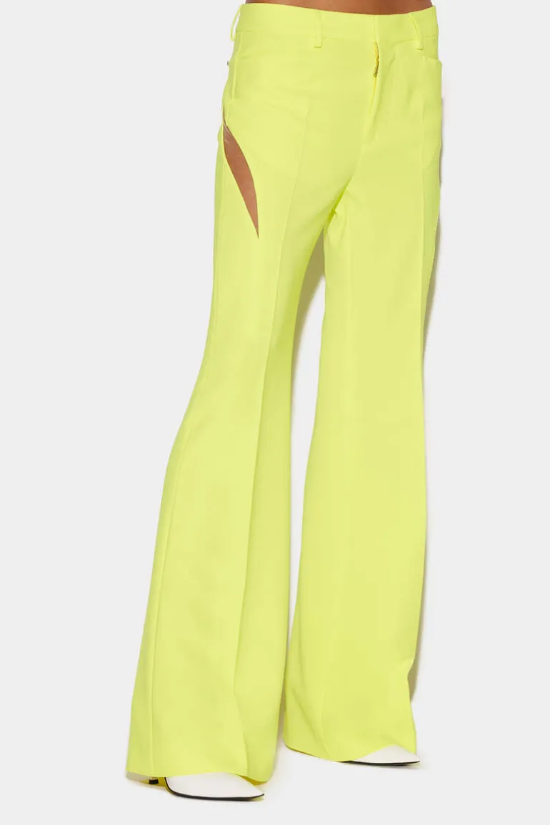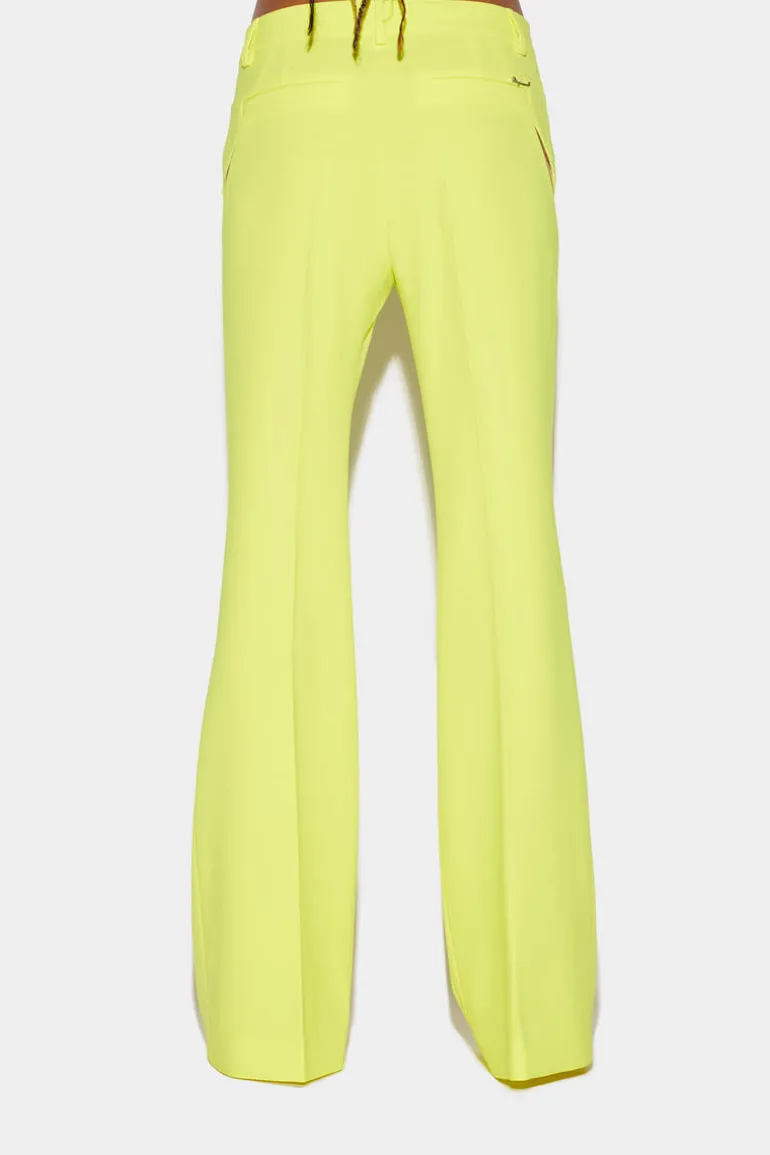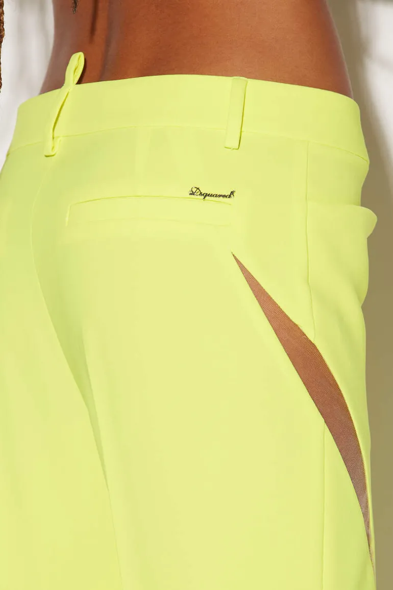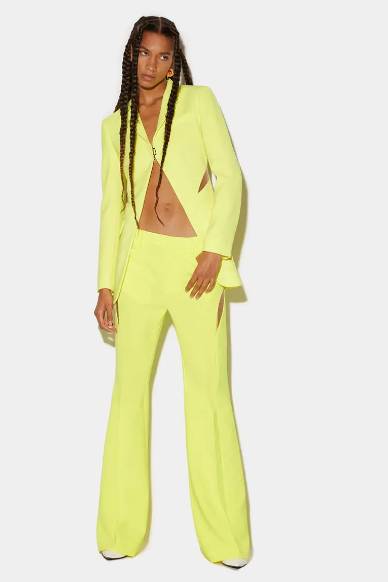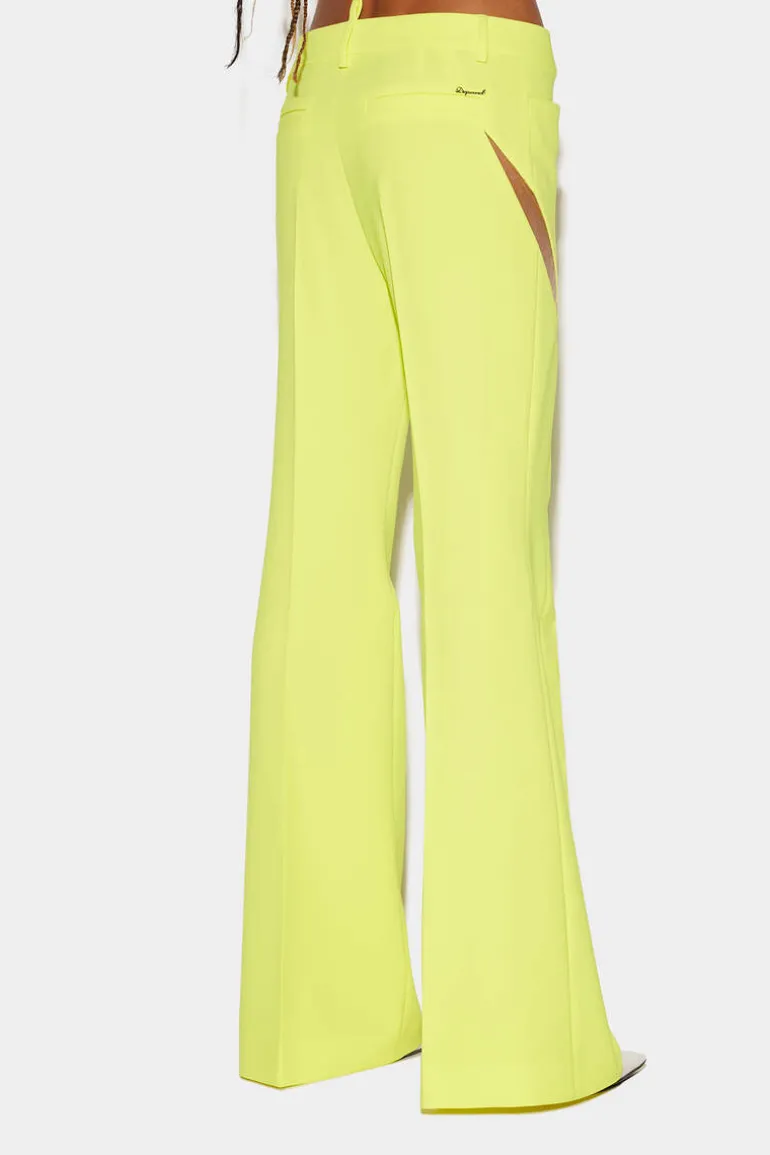 Stand Out From The Crowd With These Stunning Flared Pants From Dsquared2. The Distinctive Transparent Side Slits Add A Touch Of Edginess And Glamour To The Overall Look. The Low Waist And Bell Bottom Style Flares Below The Knees Give The Pants A Flattering And Trendy Silhouette. Pair These Pants With A Simple And Fitted Top To Balance Out The Volume Of The Pants. Try A Tucked-In Blouse Or A Cropped Top For A Chic And Stylish Look.