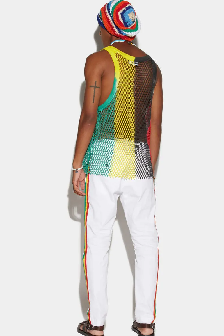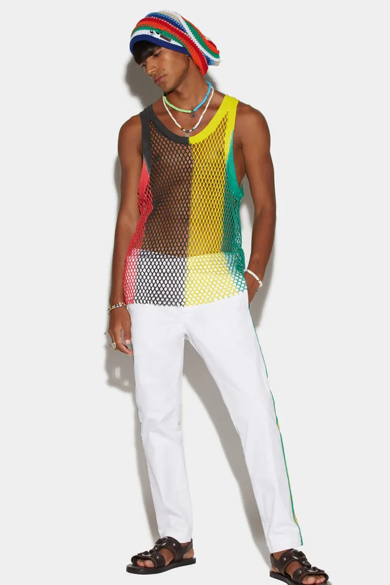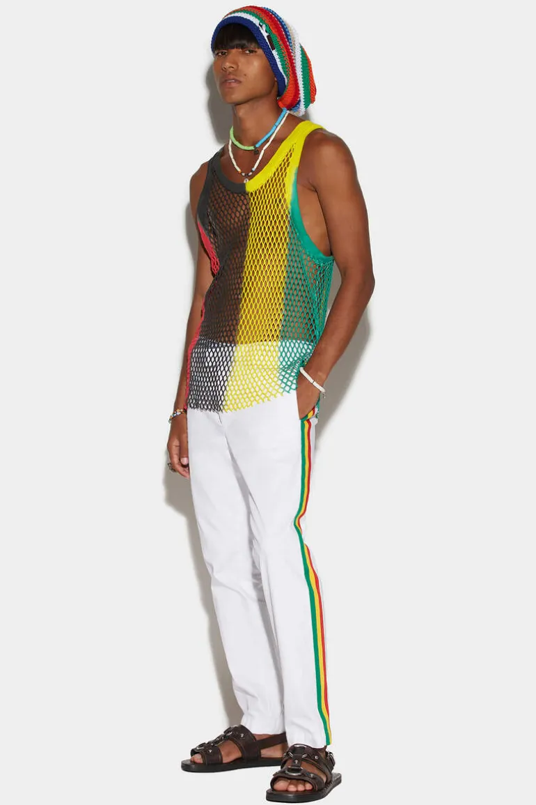 Opt For A Classic With A Twist In These Tidy Chino Pants. Worked In A Crisp, Fresh Cotton With A Straight Fit. Features Rasta-Inspired Tricolour Side Bands With Two Welt Pockets On The Back And A Discreet Dsquared2 Logo. Pair With This Season’S String Vest For A Retro Touch.