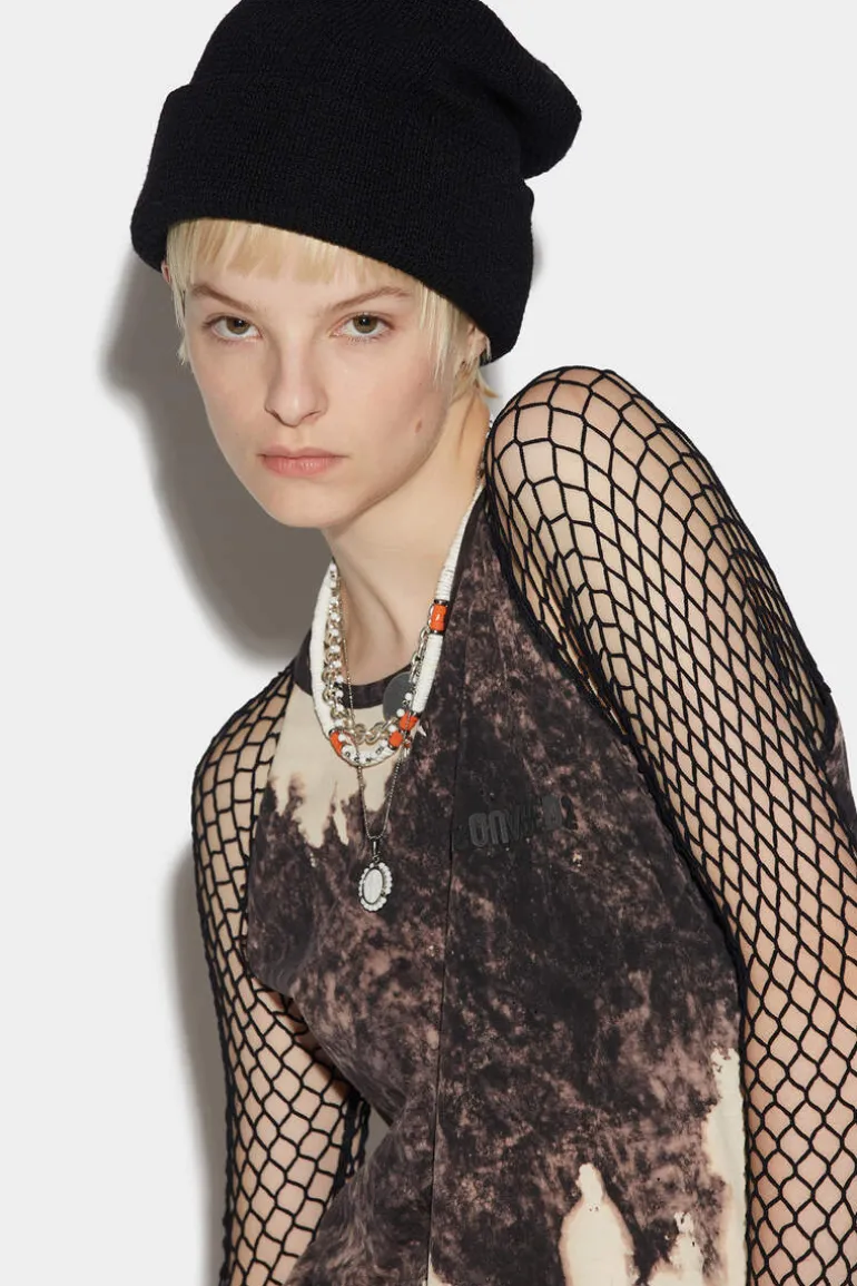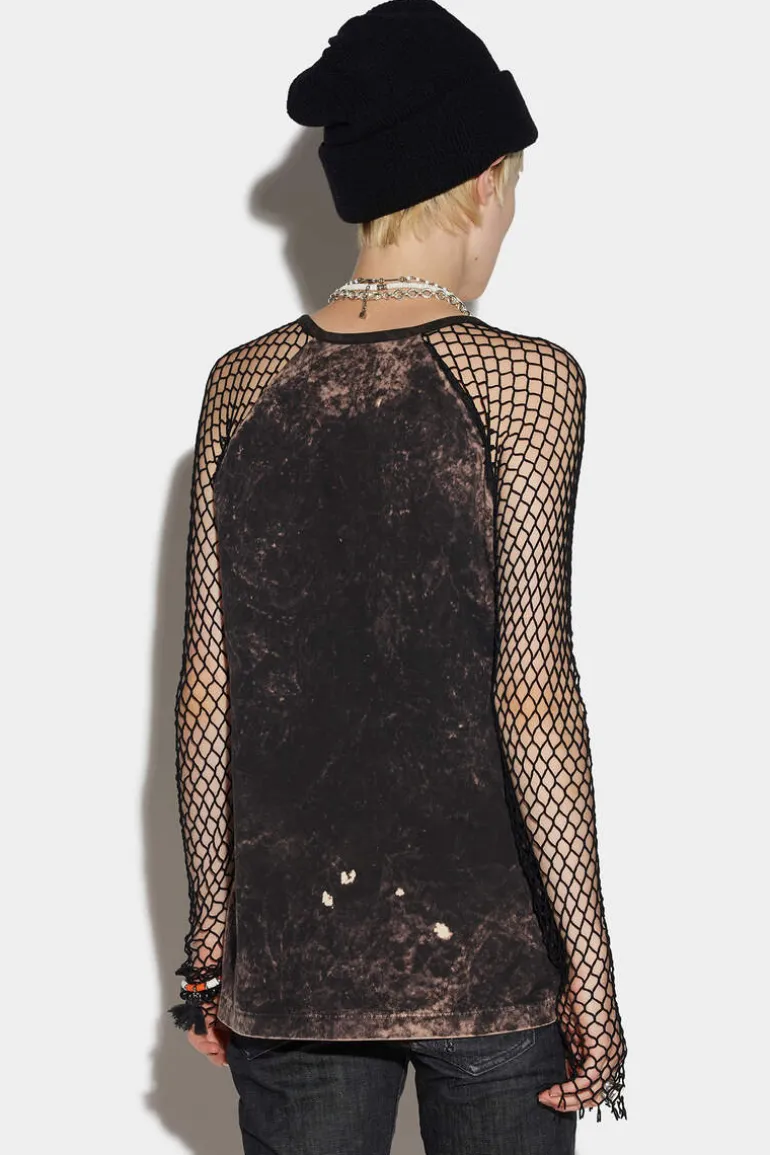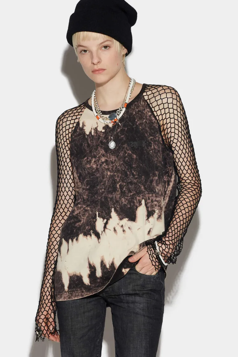Get Your Rock Chick Vibe On With This Tee In A Delicious Tie-Dye With Fishnet Sleeves. Team With A Pair Of Our Fabulous Black Skinny Jeans And Boots That Are Made For Stomping!