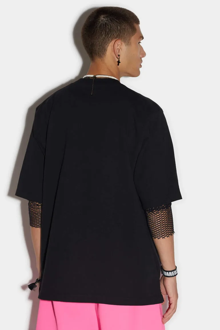 This Black T-Shirt From Dsquared2 Is The Perfect Addition To Your Skater Or Surf-Inspired Wardrobe. With Low-Shoulders And Elbow-Length Sleeves, It Features A Small Brand Patch Embossed With The Iconic « Dsquared2 » Logo. Pair It With Your Favourite Jeans Or Shorts For A Laid-Back, Casual Look.