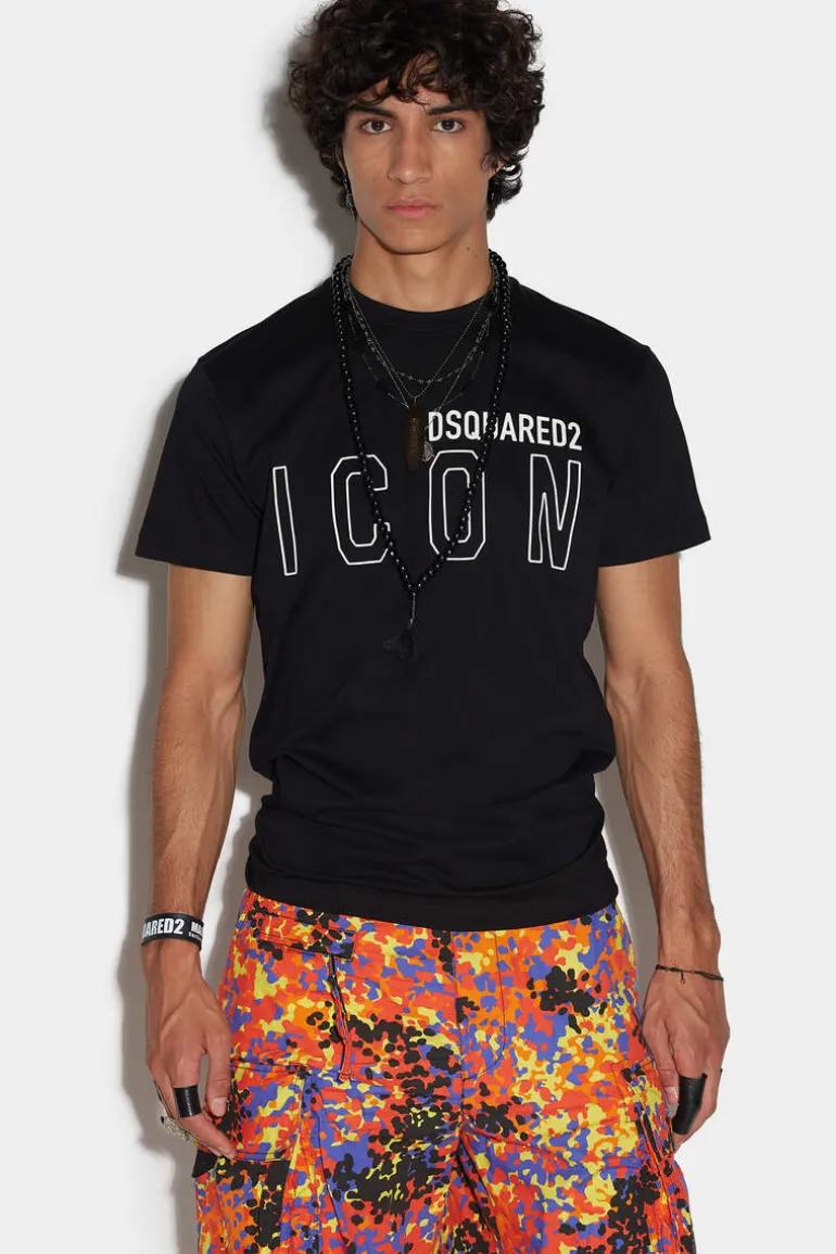 The Dsquared2 Men’S T-Shirt Features A Sleek Crew Neck Design And Bold, Outlined Lettering Of « Icon » And « Dsquared2 » On The Front. This Versatile T-Shirt Is Available In Both Black And White, And Pairs Well With A Range Of Outfits. Try It With Jeans And Sneakers For A Casual Look, Or Dress It Up With Chinos And Loafers For A More Sophisticated Vibe.