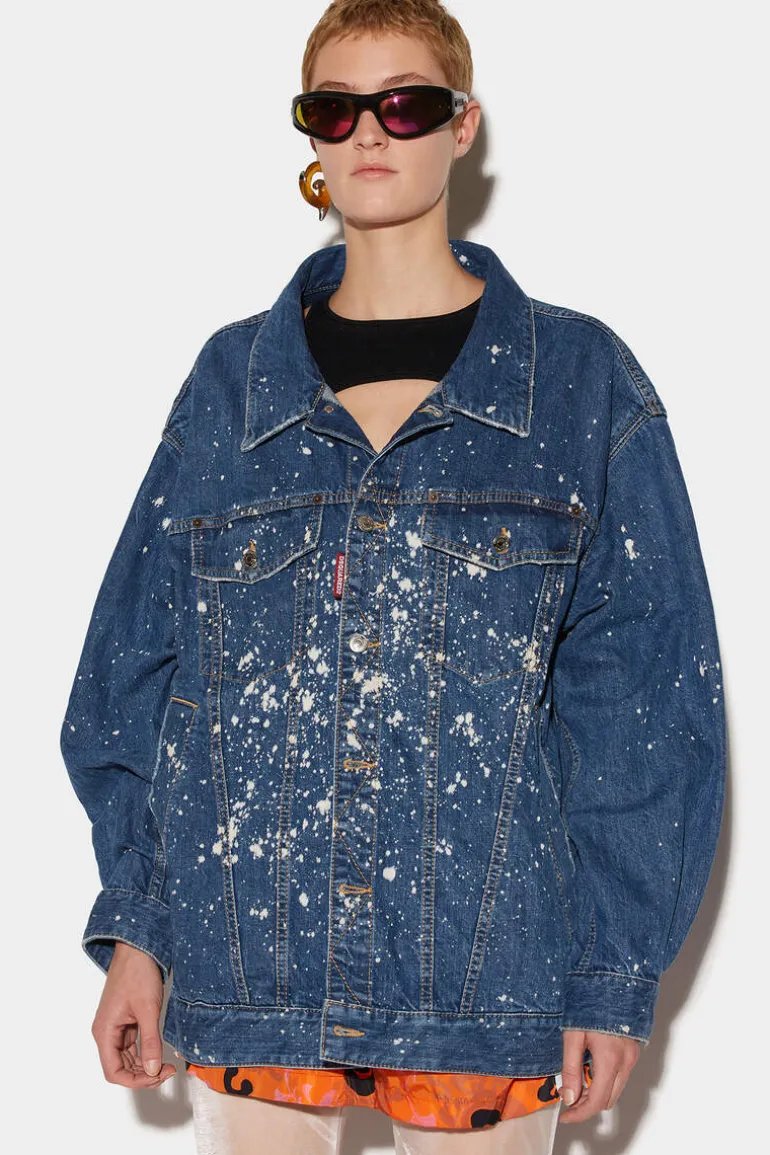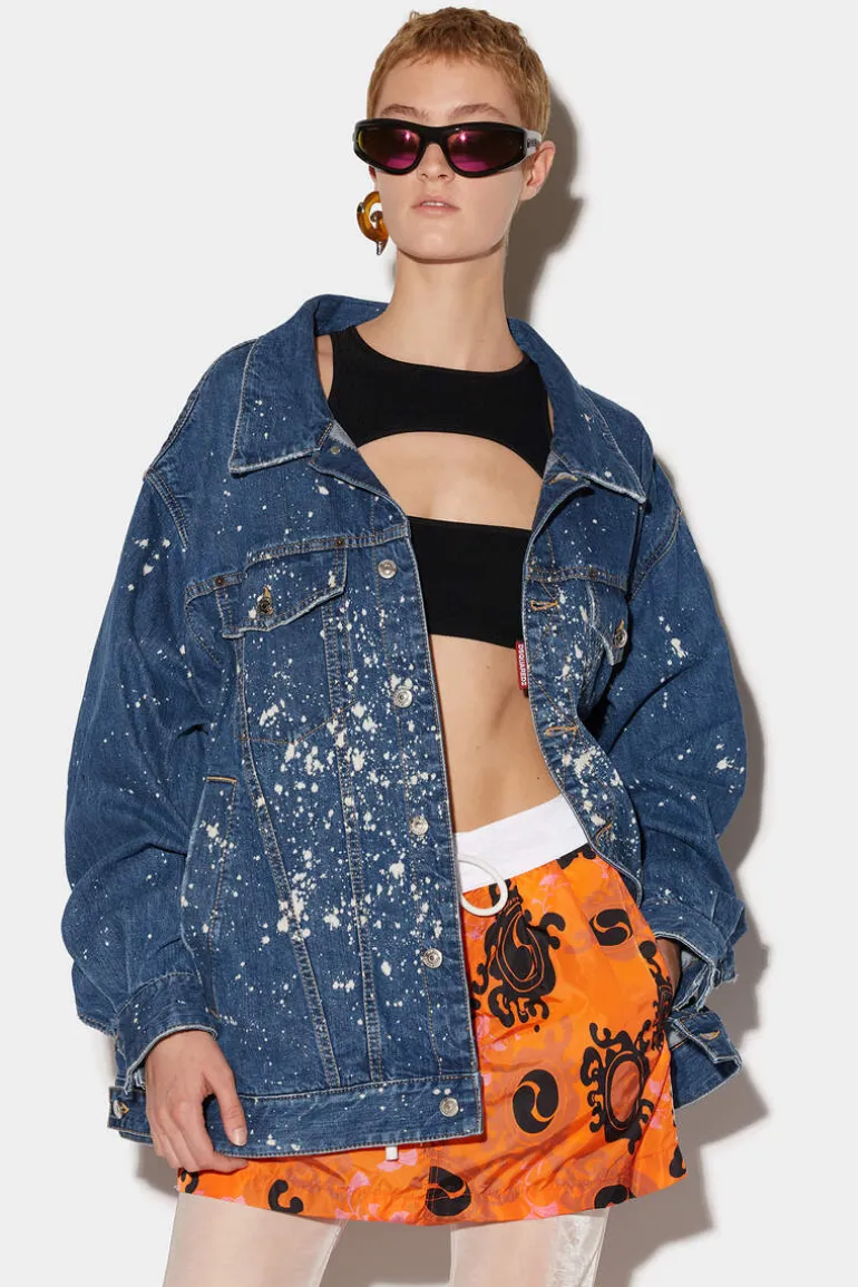 Stand Out From The Crowd With This Oversized Blue Denim Jacket From Dsquared2. The Sea Salt Water Wash All-Over Gives The Jacket A Unique And Playful Look. The Stitch Detailing On The Front And Button Closure Add A Touch Of Sophistication, While The Front Pockets Provide A Practical Touch. The Dropped Shoulder And Baggy Sleeves Add A Laid-Back And Relaxed Vibe To The Overall Look. Pair This Jacket With A Pair Of High Waisted Jeans And Heels For A Chic And Stylish Look. For A More Casual Look, Try Pairing It With A Pair Of Leggings And Sneakers.